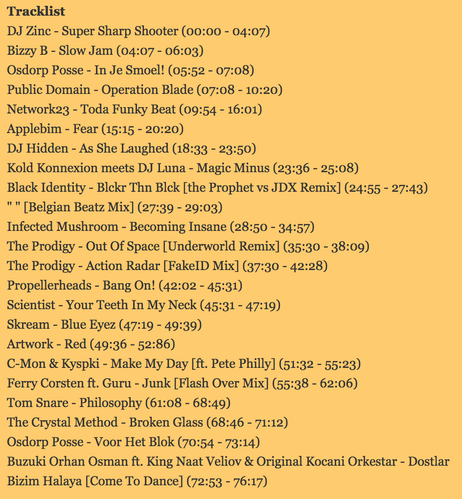 - I put detailed time markings, so that people would be able to identify the transitions and the amount of work I’d put into blending tracks together.