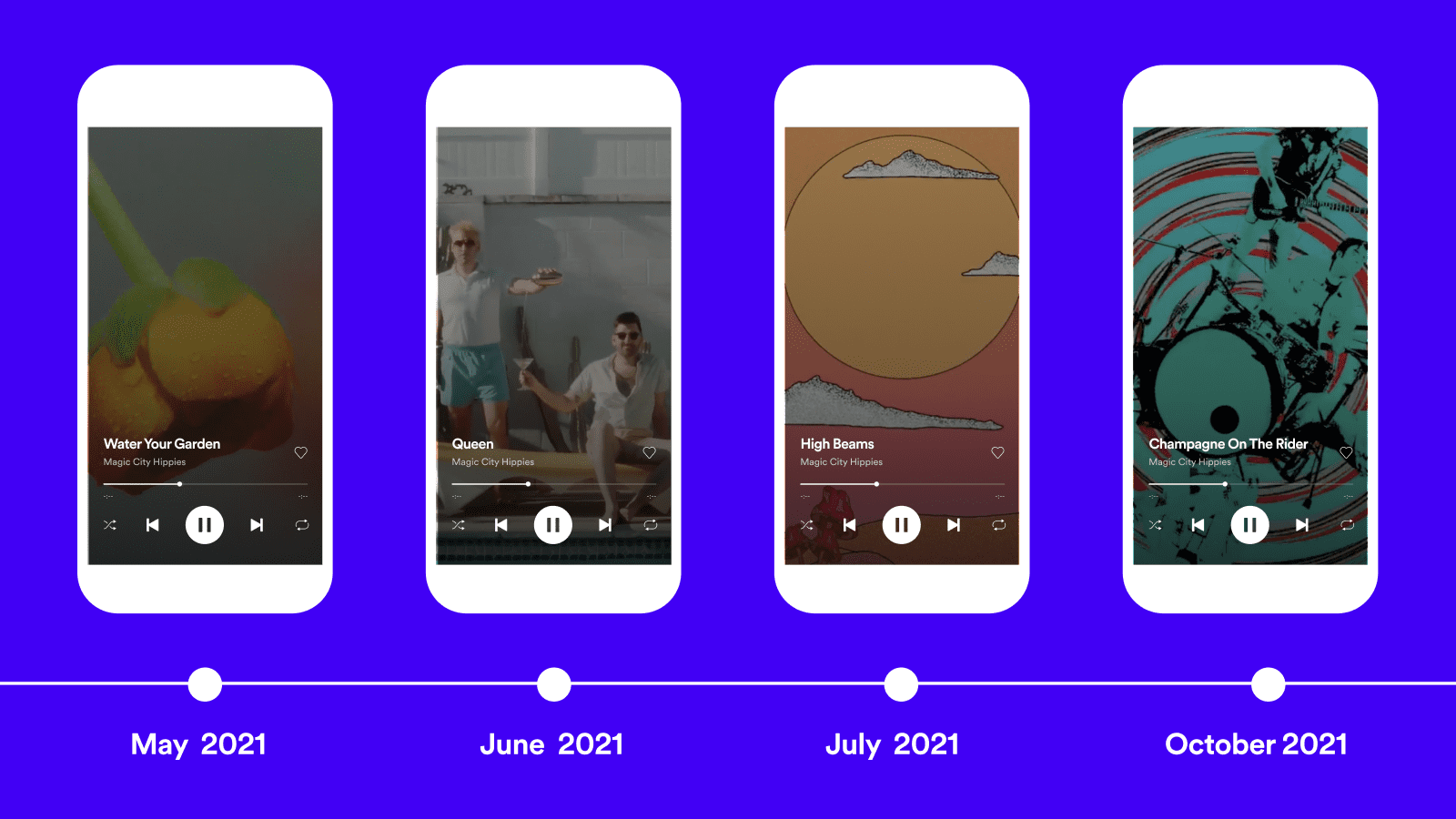 Magic City Hippies’ comprehensive use of Canvas — the Spotify for Artists tool for short, looping visuals — ensured that listeners who clicked the Marquee also got a taste of their creative world. The band invested in videos for every Water Your Garden single, and they made a Canvas for each. “Canvas allowed us to bring that visual into the Spotify platform, and to really give a deeper, more immersive listening experience to our fans,” Desmond explains. “The other thing I love about Canvas is, when it’s shared to Instagram Stories, which is something that we really look out for and encourage our fans to do… It just makes it that much more engaging for them.”