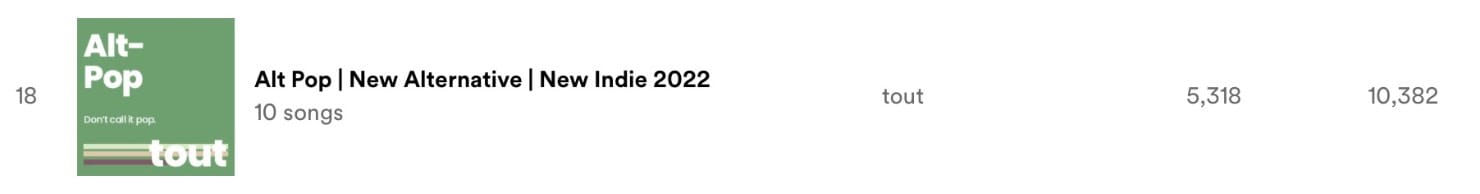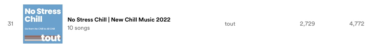 I’ve racked up over 30K streams through Tout playlists over the course of my campaigns: