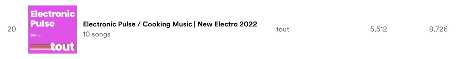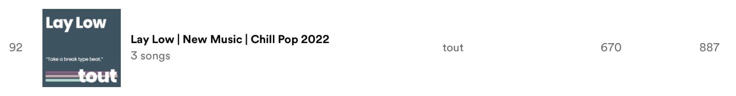 It’s a nice bonus that I wasn’t expecting when I signed up. Between Release Radar and Tout playlists, each of my releases is guaranteed a certain bedrock level of support.