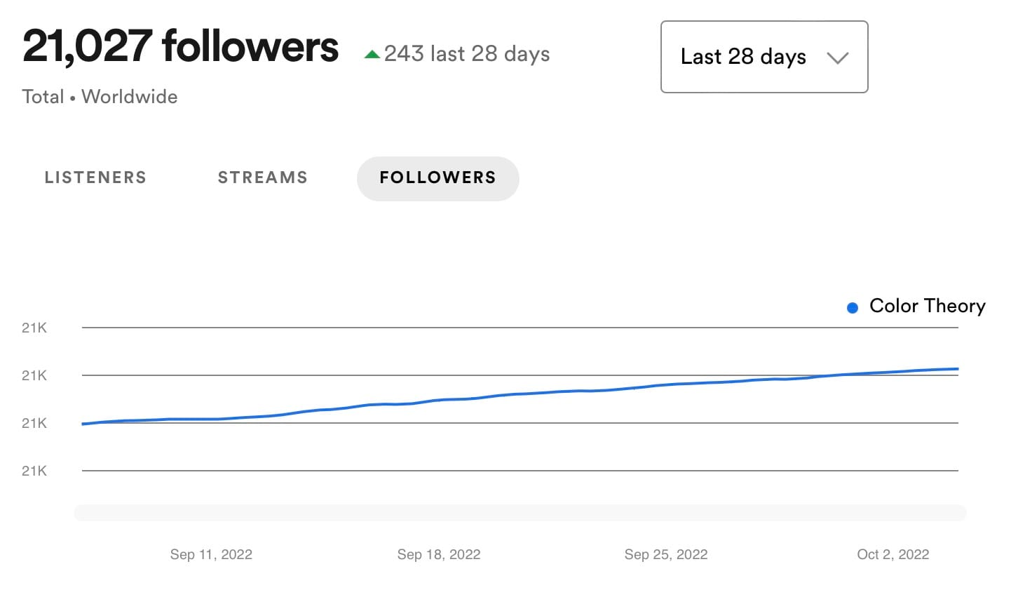 Every Color Theory follow and pre-save is from a user clicking “Like” after seeing/hearing Color Theory specifically on the website.
