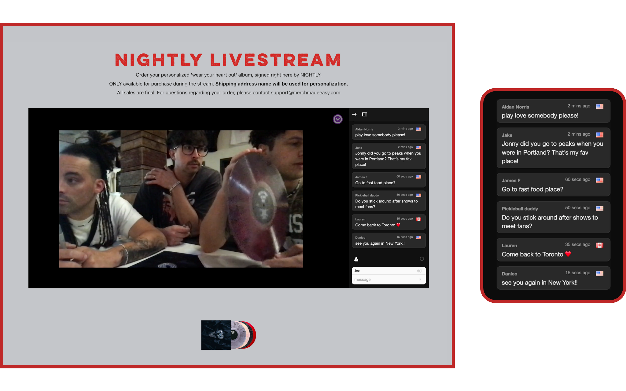 - Fans could chat with the band, purchase the limited vinyl, and get a personalized signed copy in real time.