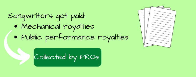There’s also a series of exclusive rights that comes with the ownership of a copyright that includes making copies, known as the mechanical right, and performing the work to the public. When we talk about mechanicals, these are royalties paid to the songwriter and their publisher for the right to create individual copies. For example, every time a label manufactures a CD, they must pay the songwriters of all the songs a royalty for every single copy they make of said CD. In the US this rate is statutory, meaning that in the US Congress sets it, while in UK it’s a percentage of the price of sale. On the songwriting side, it was decided that a stream was a combination of a mechanical use and a public performance. This means that your Performance Rights Organization collects your income from Spotify on account of the songwriting payments.