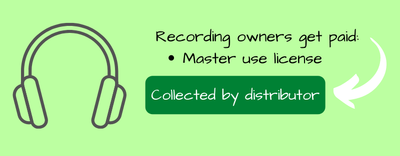 On the Sound Recording side, Spotify pays the master’s rightsholder a license to use that recording on their service. We’ll dive deeper into how this works in a second. So, to sum up, there’s technically 3 payments involved in streaming, one mechanical, one public performance (both to the songwriter) and one to the sound recording rightsholder.
