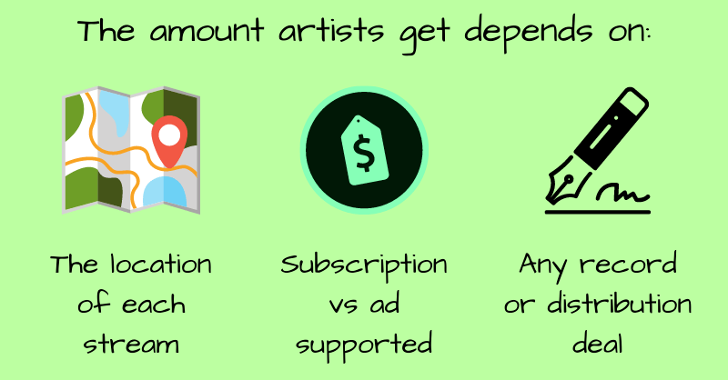 However, this pooling of money isn’t global, they pile it up depending on the location of the stream, since every country has a different subscription fee. They also separate streams from paid subscriptions from the ad-supported accounts; streams from the paid subscriptions pay out higher royalties than the ones from free accounts. This makes it very difficult to calculate the exact number of royalties per-stream, and if you already have songs up on Spotify, you’ll see that every stream has a different rate.