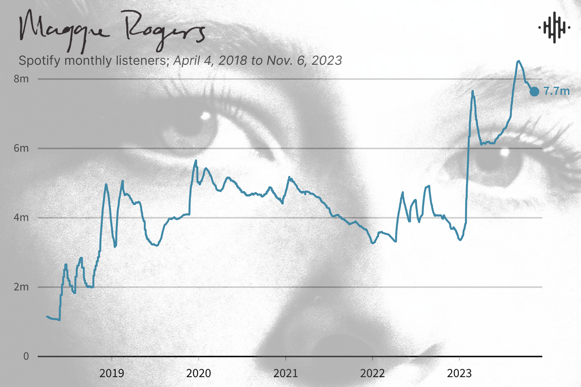 An artist on a meteoric rise, Maggie Rogers’ career was sparked by the viral video of Pharrell Williams discovering her music while she was a student at NYU. Drawing on her freshly minted master’s degree in Religion and Public Life from Harvard Divinity School, her work is strong and intentional, and her intelligence and creativity shine through her music. Her confidence when performing is palpable, and she oozes cool-girl-next-door energy. With only two studio albums out, the most recent being 2022’s Surrender, Rogers has already developed a distinct style that is resonating with fans, and it’s clear that she has a long and successful career ahead of her.