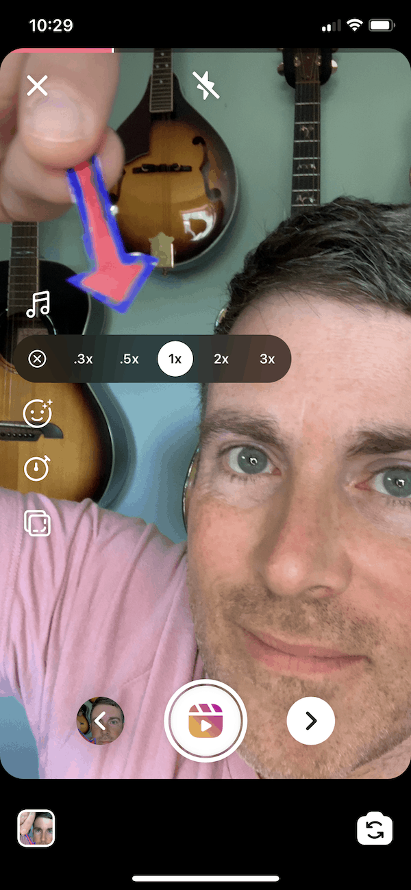8. Then shoot a video, either all at once or one clip at a time, until you reach 15 seconds (clip bars will display at the top of the screen).