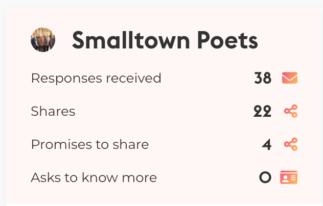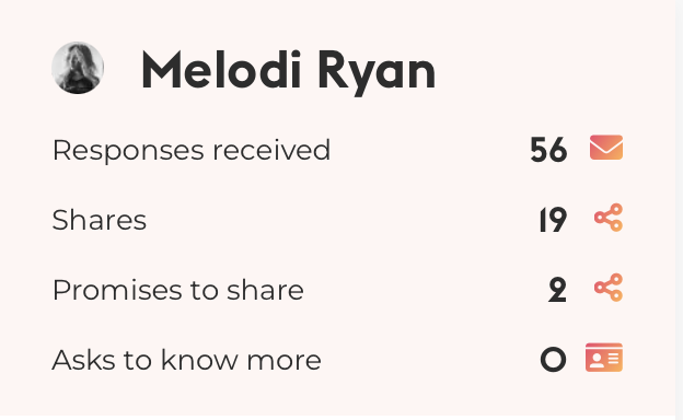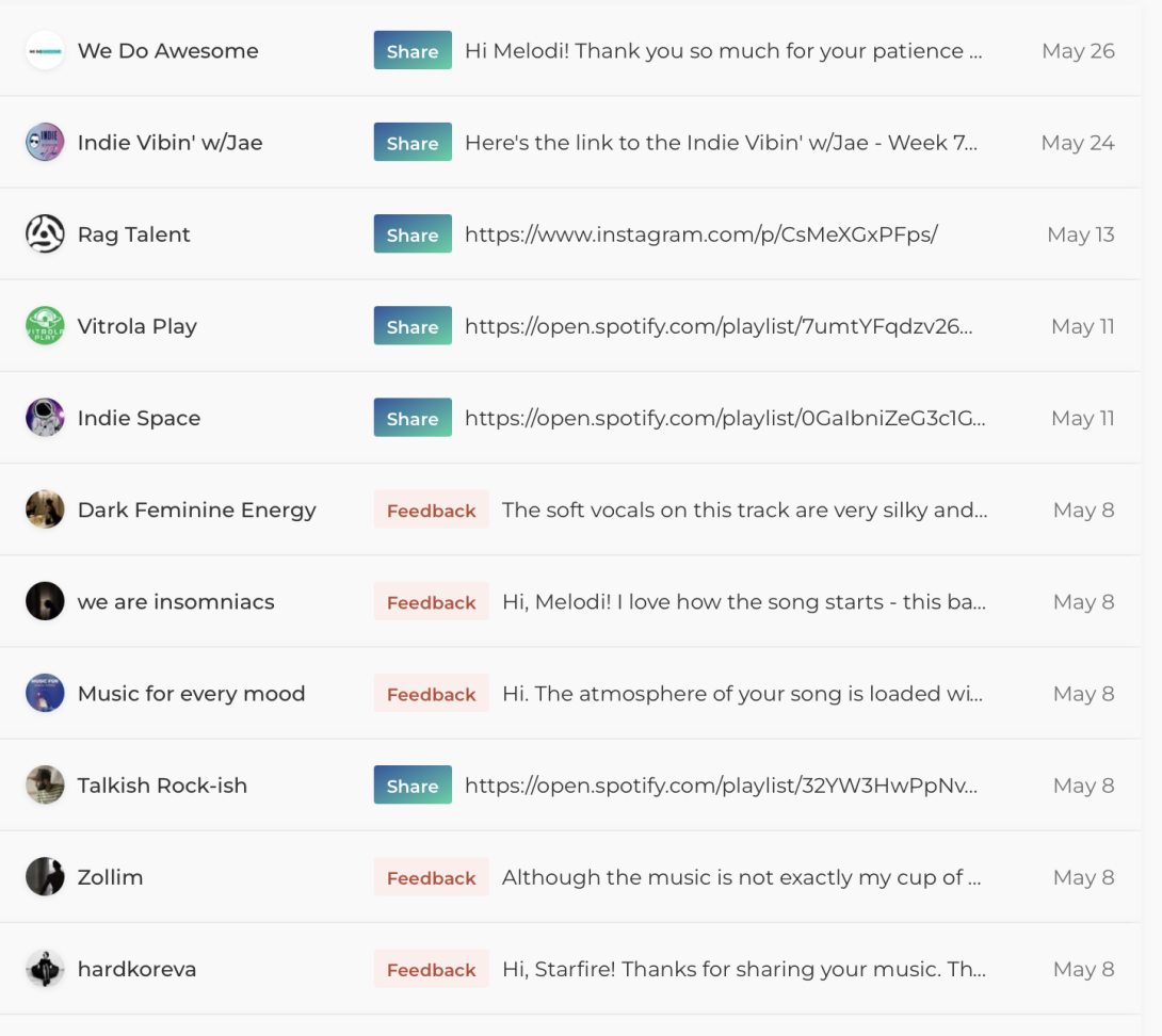 Out of 37 total pitches, he got 10 shares — a mix between playlists and social posts.