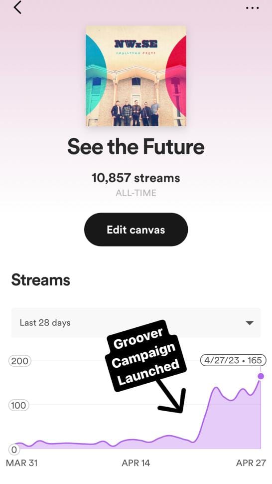 The goal with this Groover campaign was to get more activity and listener data associated with this song “See The Future.”