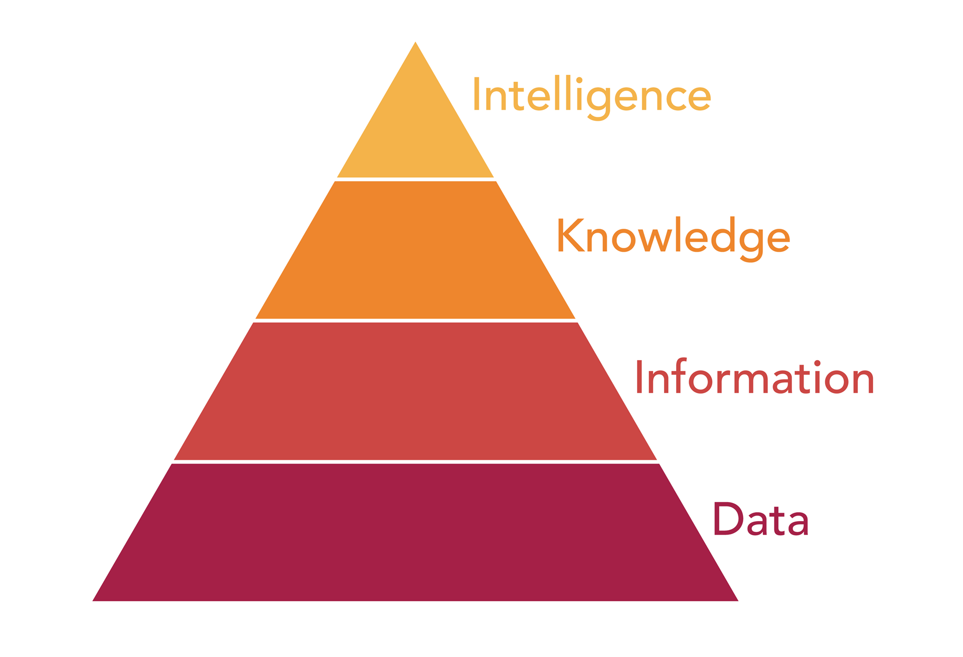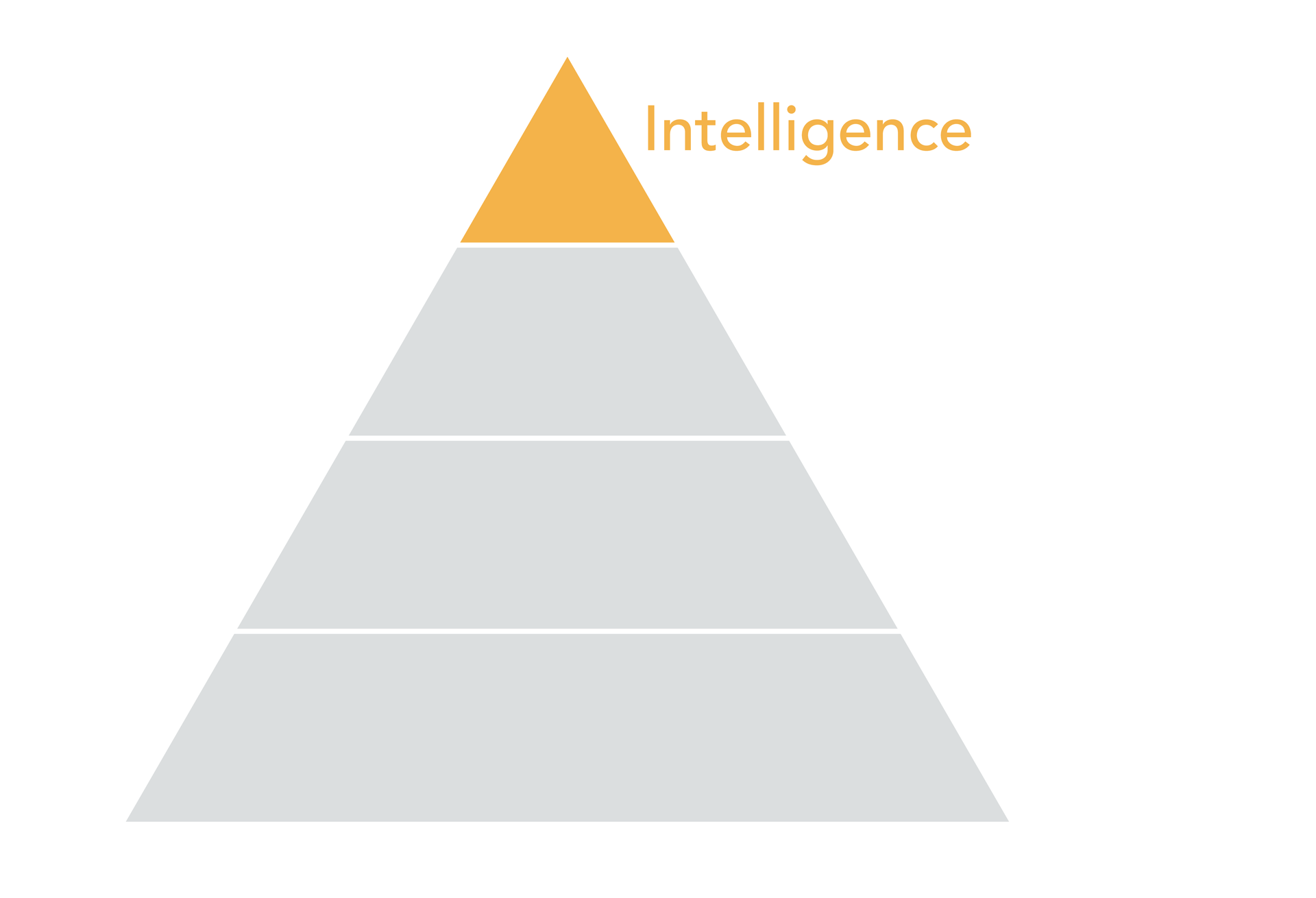 The top tier of the pyramid, intelligence, is relevant when we are able to be more prescriptive with our analysis, but this is also a far riskier endeavor.