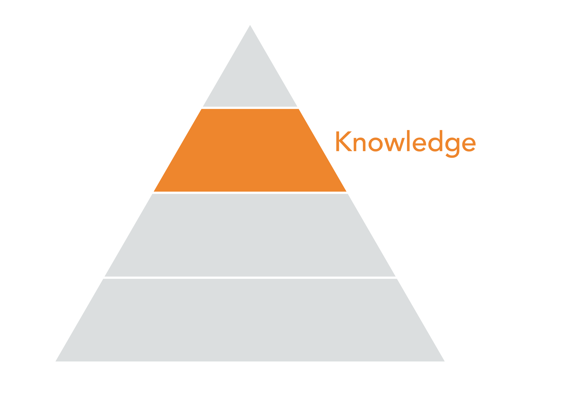 The next level of the pyramid is information. Here we are starting to talk about structuring our data, perhaps visualizing it in some graphical manner
