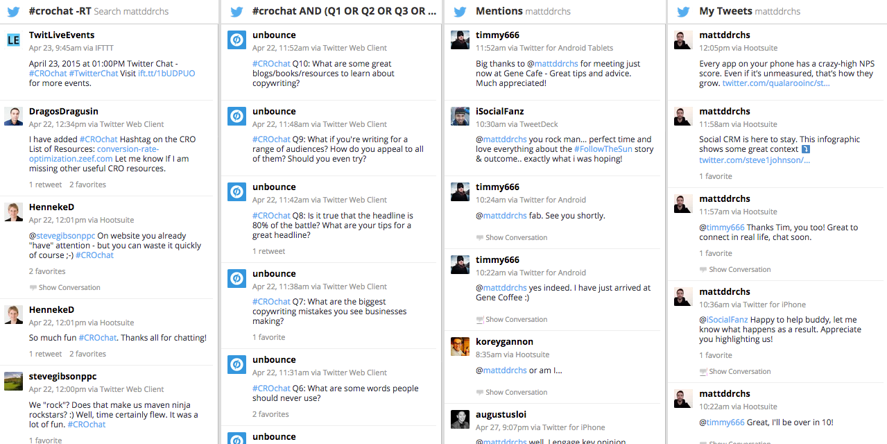 You may have heard that the secret to comedy is… timing. The same holds true for Twitter chats. Will you host weekly chats? Monthly? Or will they be more sporadic, aligned with your marketing programs? Whatever frequency you choose, be consistent. Your community will find value in knowing when to tune in, and will be able to integrate your chat into their own schedules. Also consider the timezone(s) of your community, competition from regularly scheduled chats, and weekly patterns (let’s get real: nobody has time to chat on Friday at 4PM or first thing Monday morning).What should my chat hashtag be?