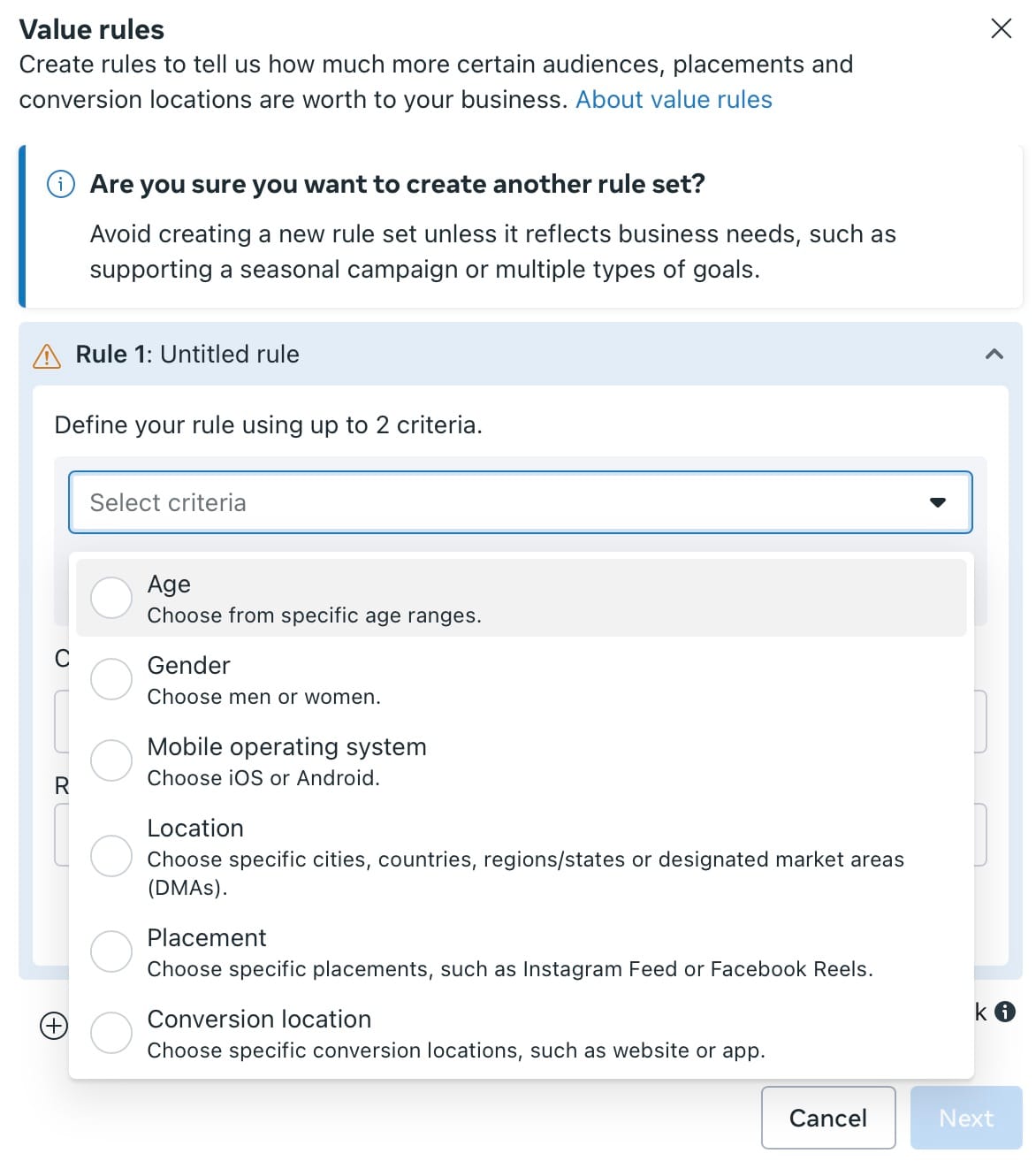 And so with Meta Ads Value Rules, you can say you’re willing to bid, say, 25% more to put your ad in front of a woman.
