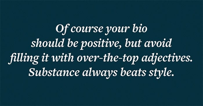 If you’ve been active as an artist for a while, no need to include every single gig, remix, track, release, review from your entire career. A music bio should be a highlight reel, not a longhand version of your Discogs profile.Of course, your bio should be positive, but avoid filling it with over-the-top adjectives. Substance always beats style. If you’re not sure, err on the side of toning it down.