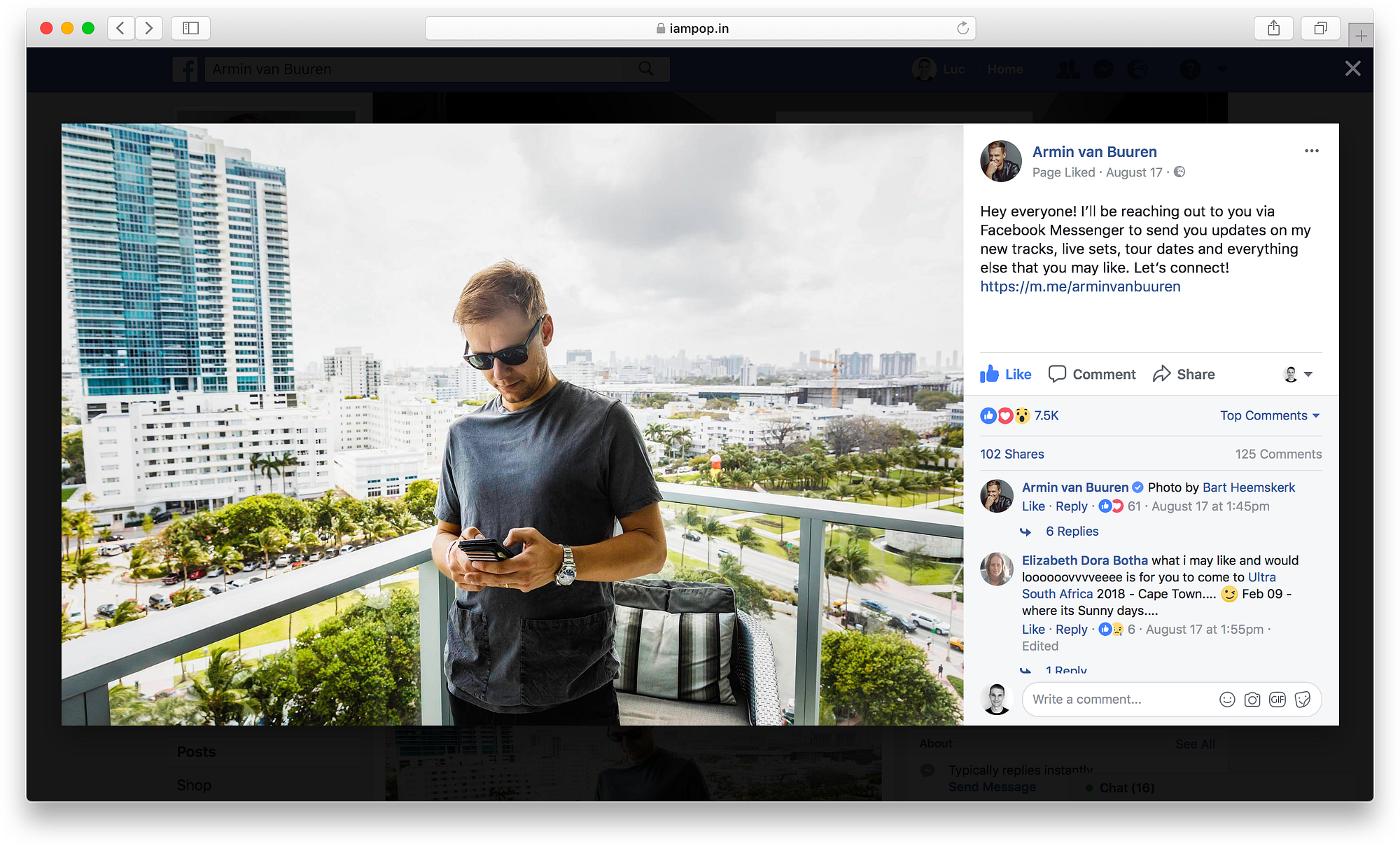 If you want to take it to the next level and really get fans to notice you, you can record a video of yourself announcing your Messenger bot and post it on Facebook for all your fans to see.Or you can keep it simple and just write an informative post about your Messenger bot. Or you can do both. There are some really good examples below that show how Armin van Buuren, Tash Sultana and Enter Shikaripromoted their own Messenger bots.