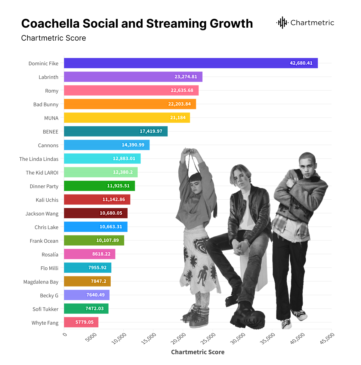 For a festival that is highly immersed in influencer culture, significant growth on social platforms is definitely an added perk of landing a Coachella slot. With that being said, it’s no surprise that some of our highest social growers were at the right at the center of Coachella’s online buzz.