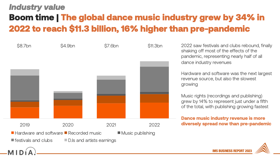 The result was that the total revenue of the global dance music industry rose 34% in 2022 to hit $10.2 billion.