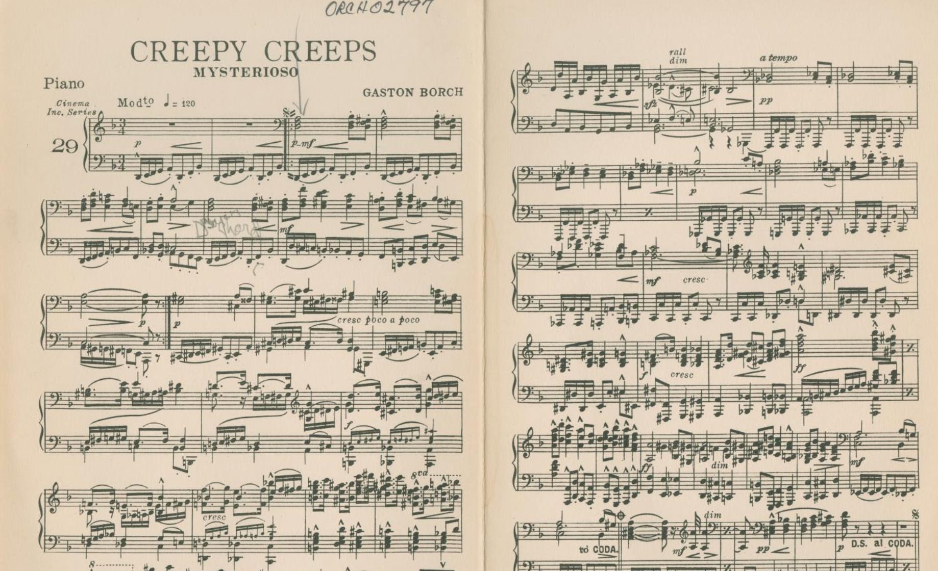 This silent film would have had live music performed to it, probably a collection of minor scale motifs and diminished chords, like this: