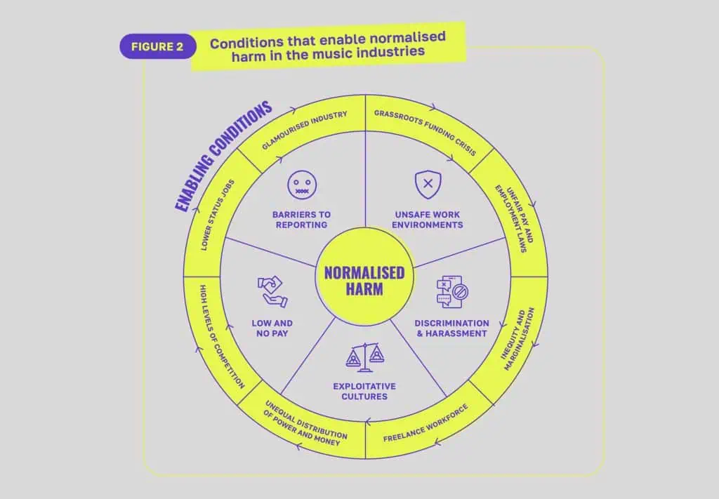 Built from testimony of 19 young people across the industry, the report illustrates how what many dismiss as “just the way it is” amounts to a pattern of normalized harm woven into the fabric of live and grassroots music culture.