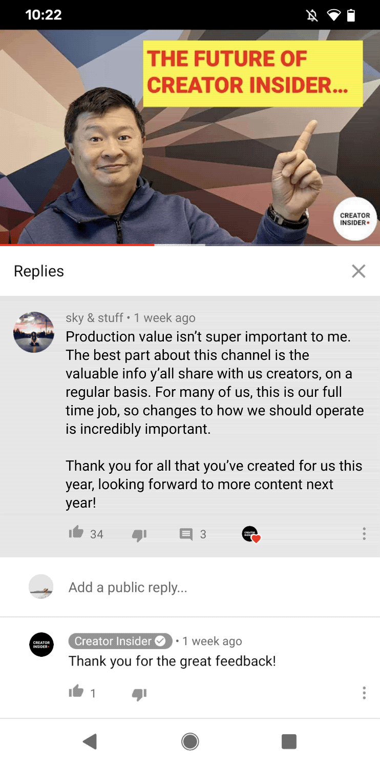 Tap on the profile picture of someone commenting on a video and their Profile card, which consolidates public information like their name, profile photo, subscriptions, subscriber counts, and recent comments, pops up. Only comments posted on the current channel will appear.