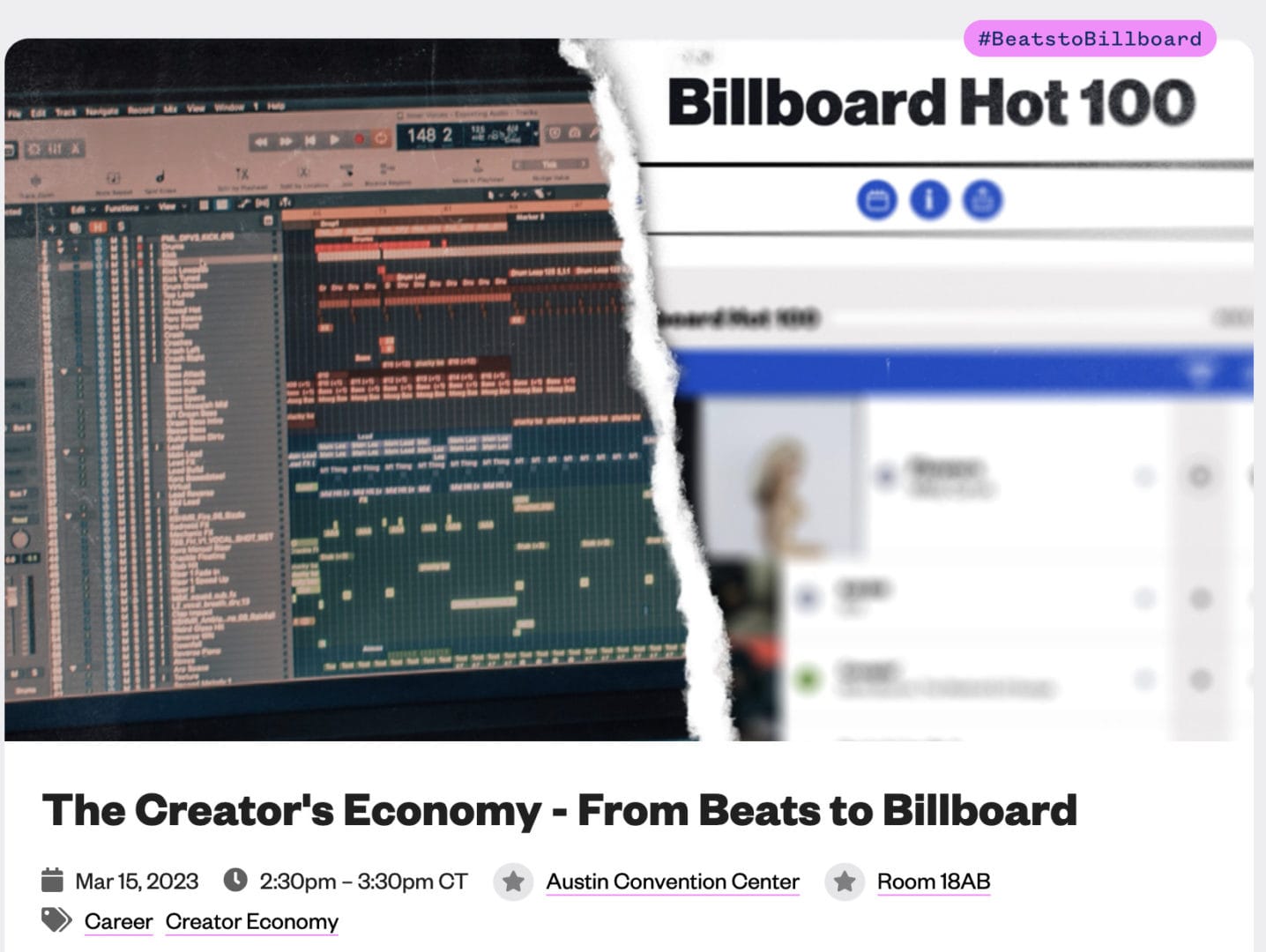 Catch Abe as part of “The Creator’s Economy: From Beats to Billboard” panel on Wednesday, March 15, 2023, from 2:30p-3:30p CST at the Austin Convention Center, Room 18AB.