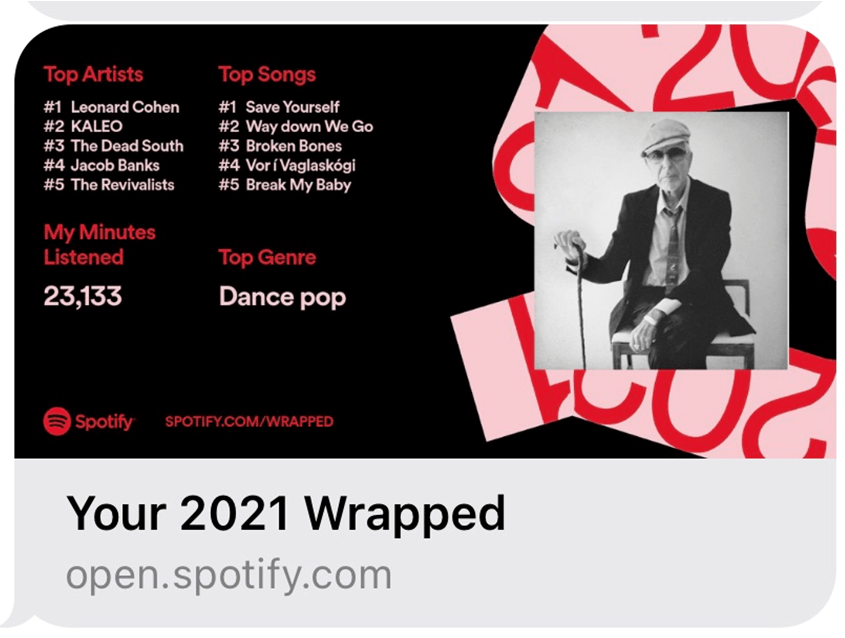 Last month, we talked about the appeal of countdowns, like Casey Kasem’s “AT40.” “Wrapped” works in much the same way for personal playlists and music tastes. And many of Spotify’s users are amazed and delighted with their results, posting highlights on their social media pages.