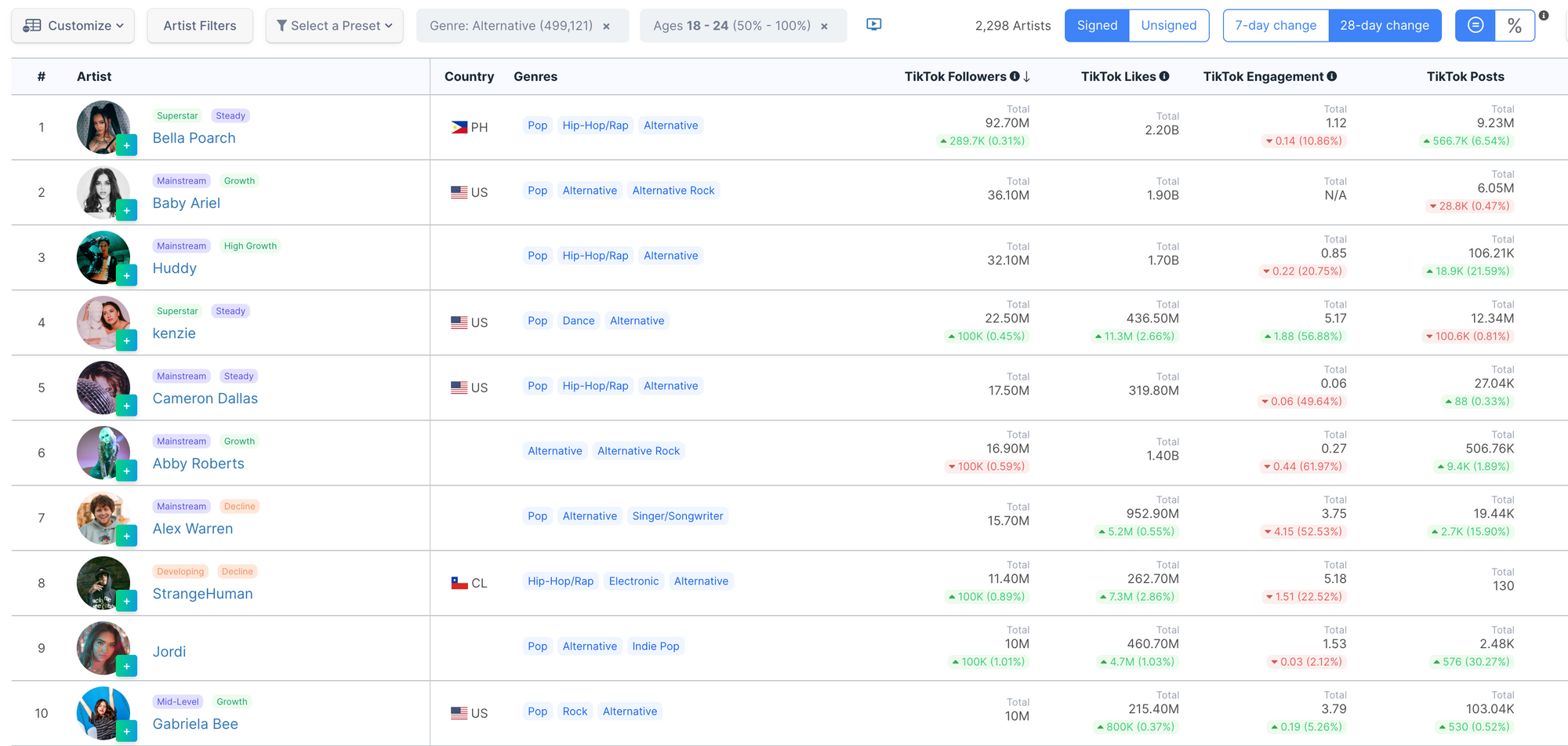 While the spirit of Tumblr Music may live on within the TikTok community, the hard truth is that its influence as a platform has come and gone. With short-form video driving content consumption, much of what made Tumblr so enjoyable might not translate for younger generations. While Tumblr Music enjoys a healthy following on TikTok, you don’t see Tumblr artists rising to the top of the TikTok follower charts. Today, the top growing Alternative artists for 18-24-year-olds on the platform are more Pop and Hip-Hop-oriented rather than Rock-oriented. In the case of Indie Rock, it’s really only The 1975 who have managed to effectively crossover, at the artist-level, to a TikTok audience.