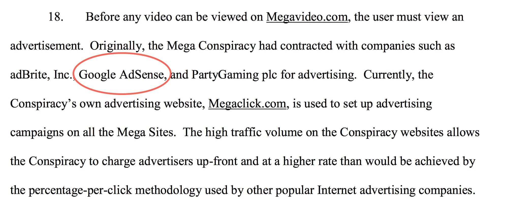 Which leads me to the Dot Com indictment. It turns out that we are not the only ones who made the connection between Google and massive piracy.