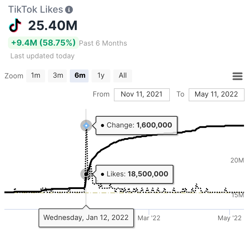 The 8-second post garnered 71.5M views, 6.8M likes, and 47K comments (at the time of writing), and significantly boosted his profile over the following month. While not every comedian enjoys the established following Iglesias does, what TikTok does provide is an environment that strongly favors content, on each video’s own merits. A celebrity’s half-baked upload could easily be overshadowed many times over by an unknown comedian’s super-engaging first TikTok. Checking other metrics like engagement rate (average likes divided by follower count) and notable followers will help give a comedian ideas on how much their viewers are into their content, not to mention possible influencers for collaboration and expansion into new audiences.