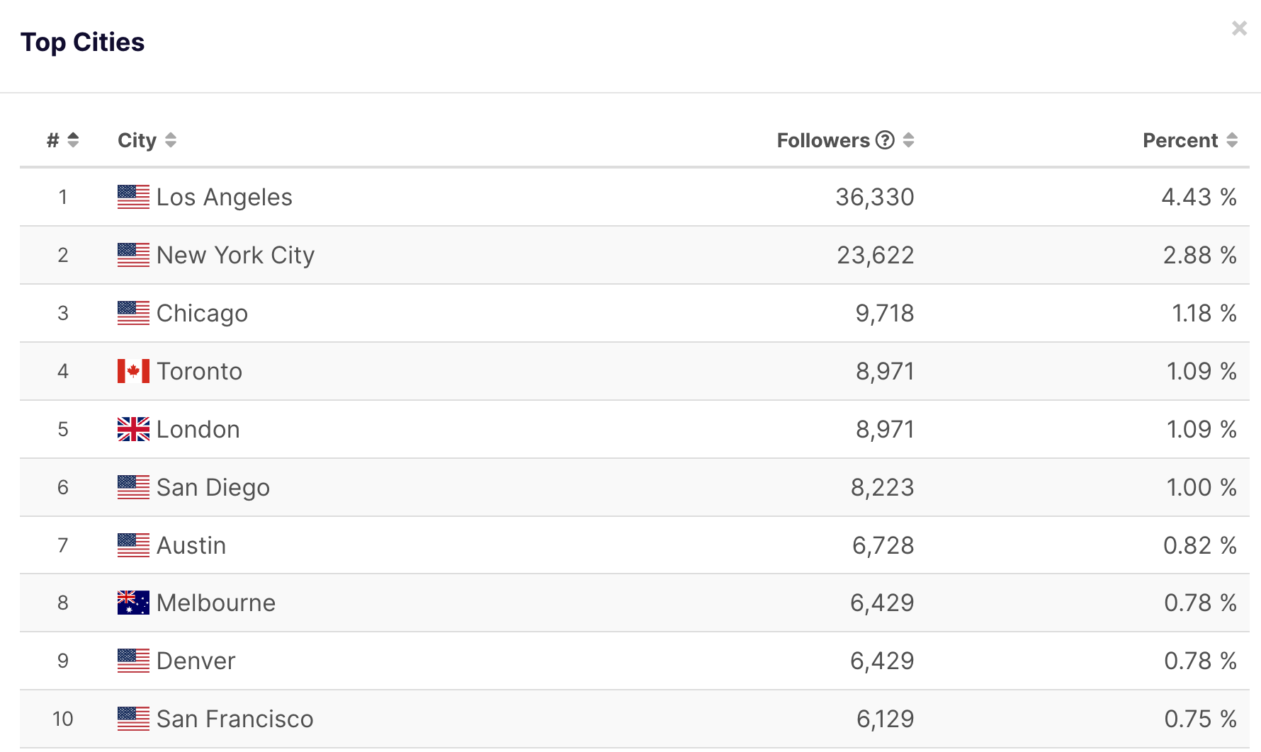 Once drilling down to Shlesinger’s Instagram audience at the city level, we get down to the brass tacks of what size venues are possible in what locales. While the hard numbers are only suggestions (ticket sales are their own beast), the proportions of the data can help her team make smarter decisions.