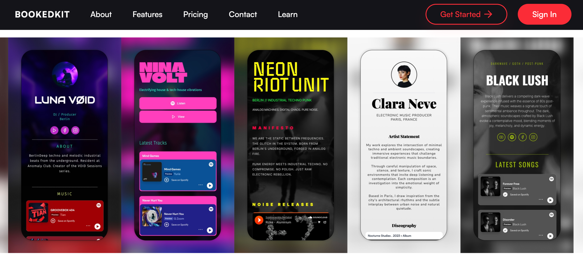 That is a meaningful UX difference, and a major thing we kept in mind as we designed BookedKit, which feels more like a structured presentation than a generic link menu. The idea is not just to help someone navigate outward. It is to help someone understand the artist before they ever leave the page.