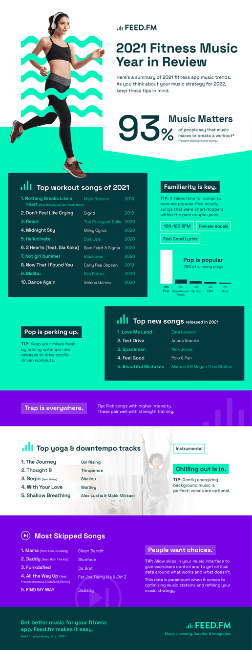 The resulting mountain of data shows some clear trends shaping the fitness music market where 93% of people say that music makes or breaks a workout.