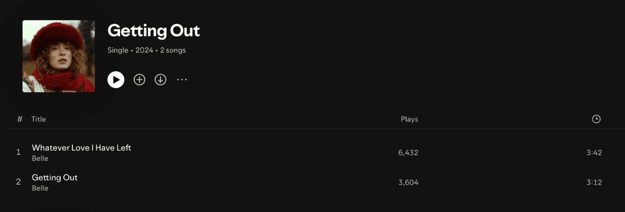 This release includes the previous track “Whatever Love I Have Left“, along with the new song “Getting Out”. The artist made sure to use the same metadata as the previous release including ISRC code. This is to ensure the stream count carries across. However, the difference here is that the main focus for pitching and promotion was the new single “Getting Out“.