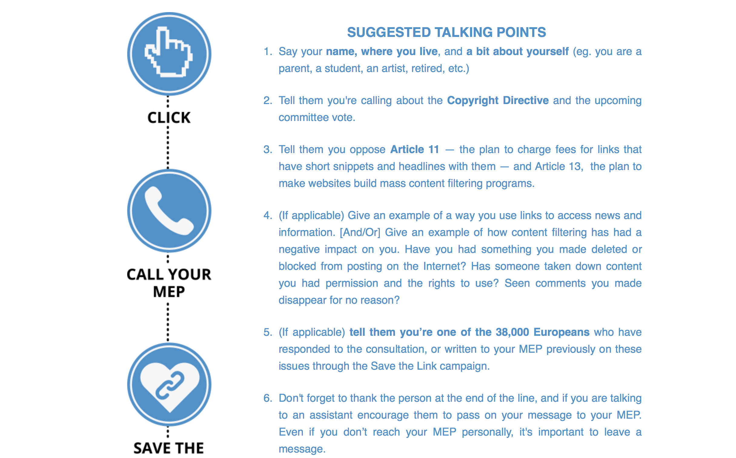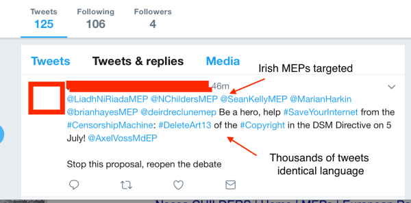 Tweet storm targets were the same as those MEPs highlighted on the SaveYourInternet.eu website. SaveYourInternet.eu used the New/Mode web tools for tweets, email and robo calls.