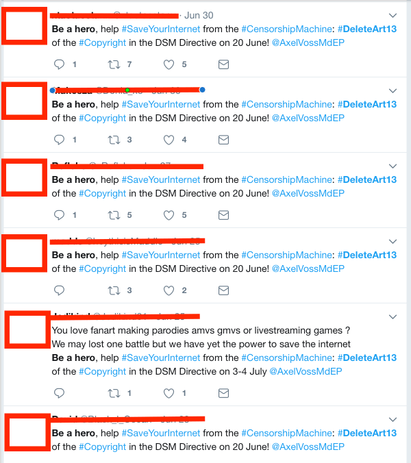 The EU parliament just went through a couple of contentious weeks in which they were overwhelmed with tweets, letters, emails and phone calls opposing Article 13 a section of the Copyright Directive that would have forced companies like Google to police their platforms better for copyright infringement. Last week we published a guest post by Volker Rieck in which he described in detail how a small group of anti-copyright ideologues apparently created a fake grassroots uprising against the EU copyright directive by essentially multiplying their numbers with bots.Today I introduce you to the Google funded group that appears to have been behind virtually every single one of these fake grassroots political attacks. Including the #DeleteArt13 campaign.