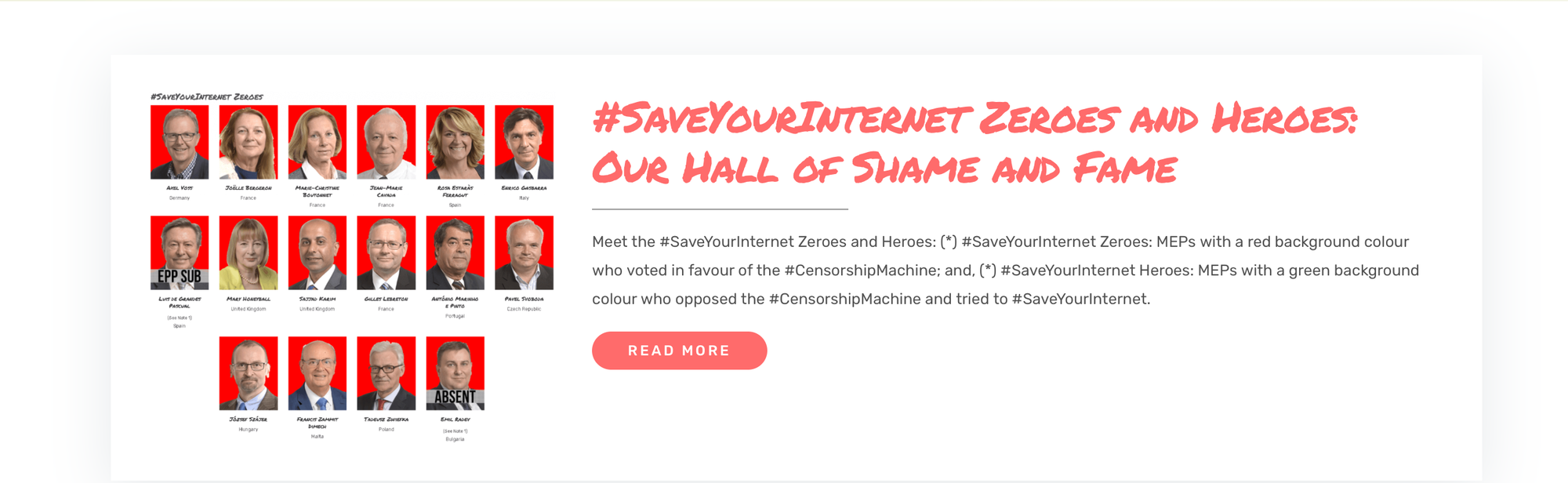 SaveYourInternet.eu website is operated by Google’s lobbyist in Brussels N-Square. Get the picture? MEPs were cyber bullied by fake mobs under the command and control of a Google lobbyist. How is this even legal?