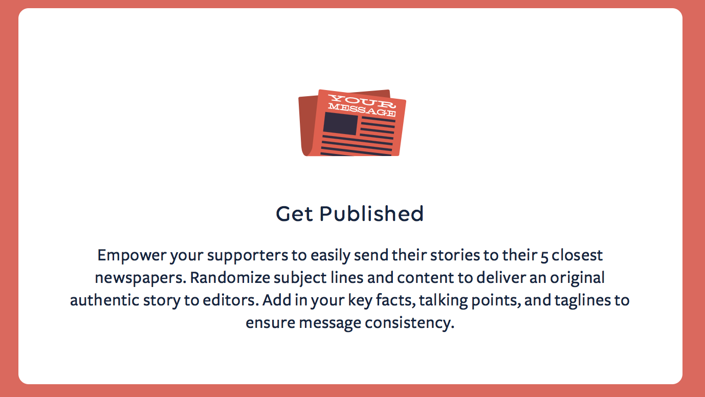 But forget the EU and Canada for now. The thing that stopped me in my tracks was this tool that allows a small team of individuals to write a “letter to the editor” to every local newspaper in the US.