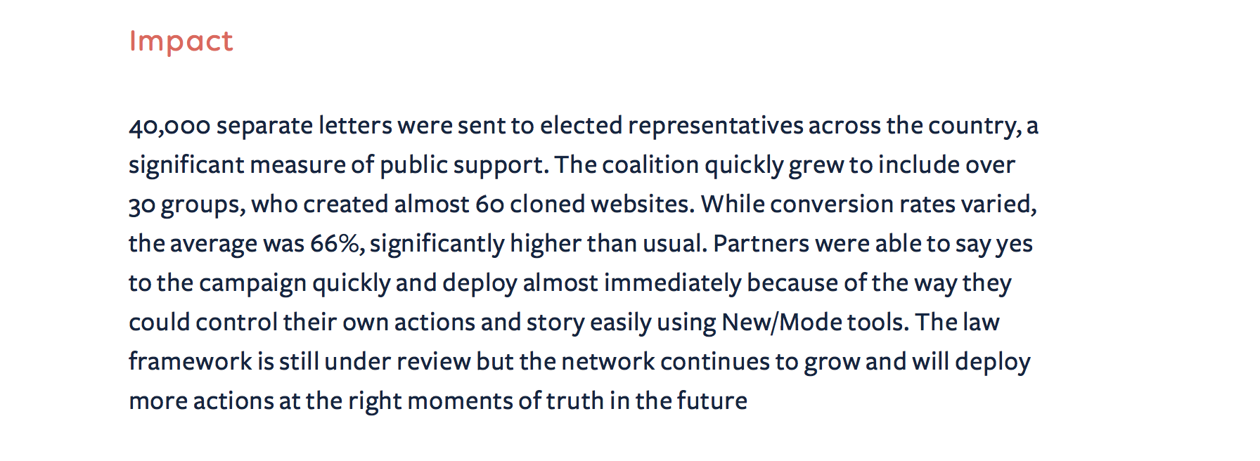 And New/Mode lets you target exactly who you want to target. Just direct the information warfare firehose at a single wavering MP somewhere. More effective.