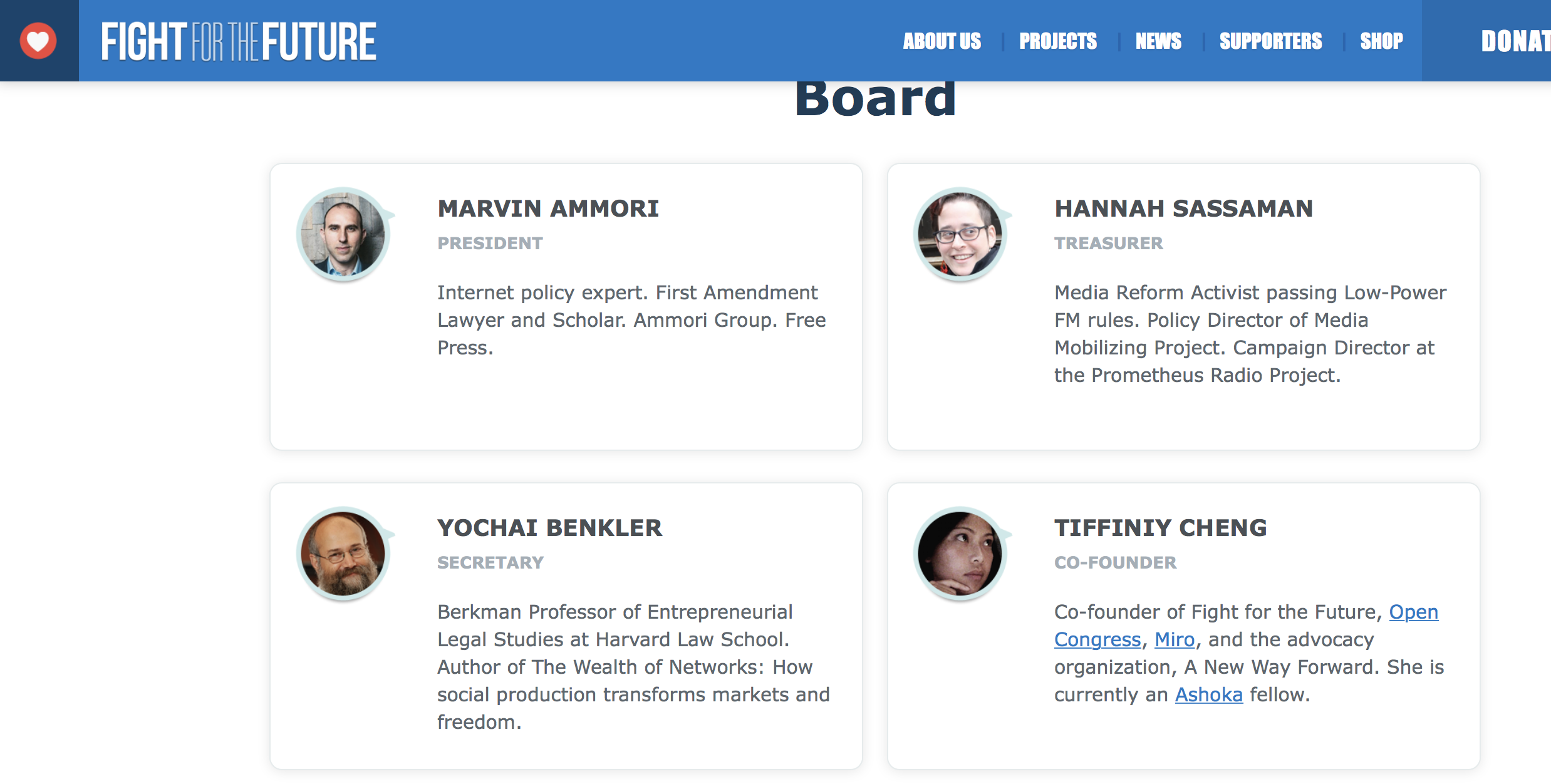 In the US command and control has been effectively run by Marvin Ammori via Fight For The Future. Fight for the Future employs the same New/Mode tools to mount it’s fake grassroots campaigns. Ammori is/was outside counsel to Google, and is currently associated with at least three other Google funded institutions including the Center for Internet and Society.I Love the Smell of Hacked Democracy in the Morning: Past Targets