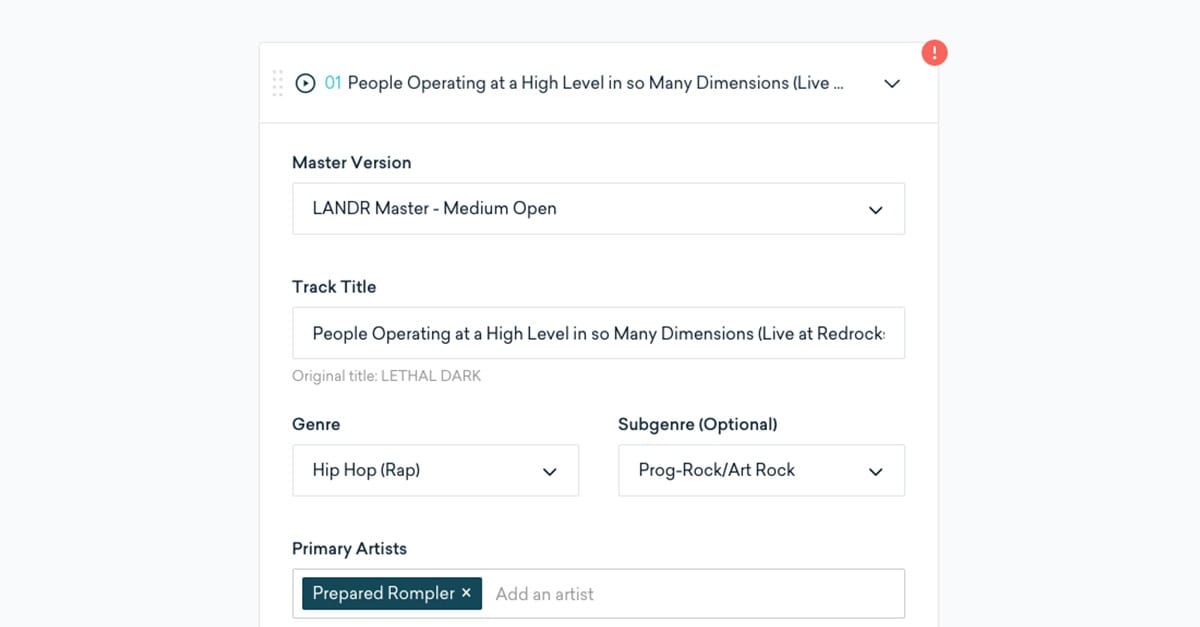 - Additional Contributors: Anyone else that worked on that track that should be credited ISRC: The unique identifier that gives your track its own digital fingerprint. If you don’t have an ISRC for your release LANDR will provide one for free.
