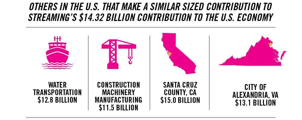 - For every $1 in economic value generated by streaming, other sectors of the U.S. economy gain an additional $1.65.
