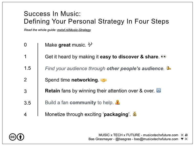 - Step zero: make really great music. Keep working on your skills. This is by far the most important part. It’s the fuel for everything else. If nothing seems to be working, it may just be because your music is not good enough, or simply doesn’t stand out. Sorry.