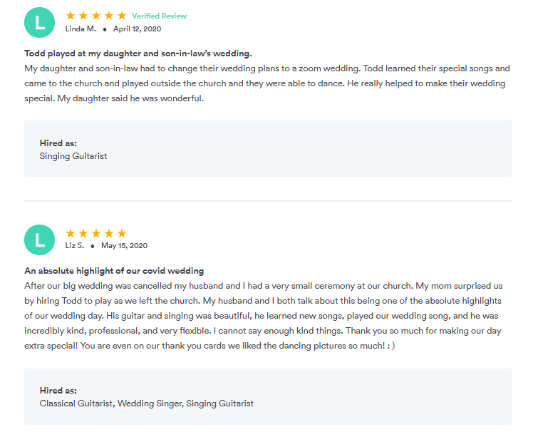 If you’ve already performed at some virtual events, capitalize on that feedback from your clients. If you’re a Featured GigSalad member, you can feature up to 3 reviews on your page so they’re the first ones that event planners will see. Be sure to encourage your clients to leave reviews about your virtual services so you can showcase how you’ve mastered the art of Zoom performances! Remember, verified reviews hold more weight with potential clients.