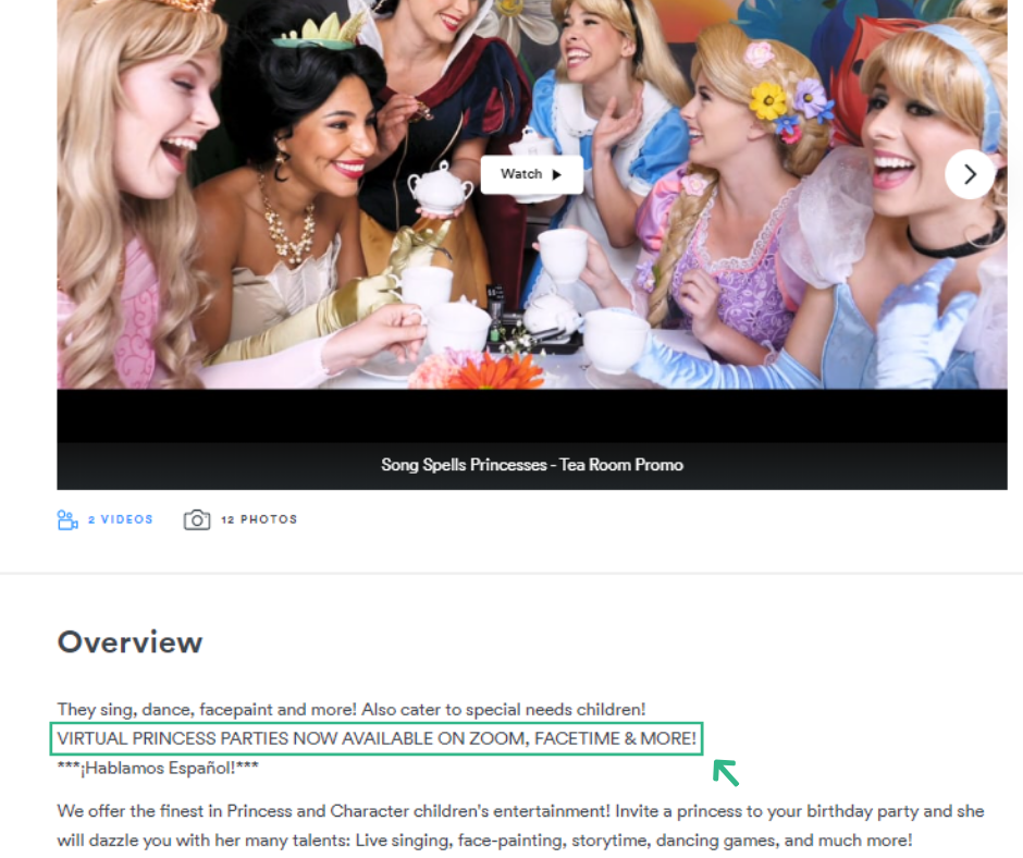 We’ve talked about this a few times in the past, but your media is so important that it’s worth mentioning again! When offering a new type of service, it’s helpful to offer your clients a view of what that experience will look like. Your old photos and YouTube videos may be awesome, but try recording a live Zoom session or take some high-quality screenshots to accurately portray your virtual services. Your potential clients will appreciate you taking the mystery out of this new trend of virtual event experiences.