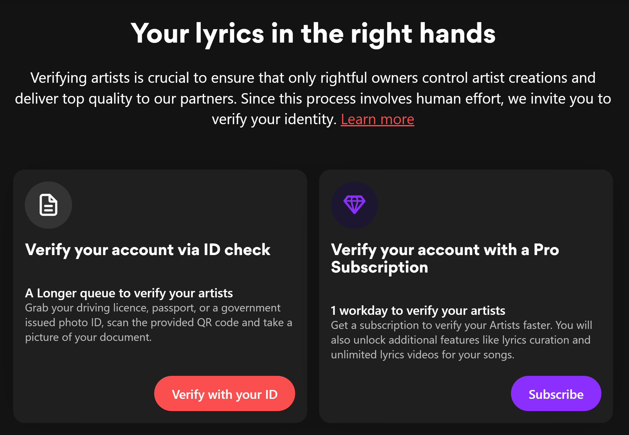 MusixMatch, which provides lyrics to Spotify, Apple Music, Amazon Music, Meta, Google, and more, now requires artists and fans who want to add new songs to first upload a selfie with a valid government-issued photo ID.