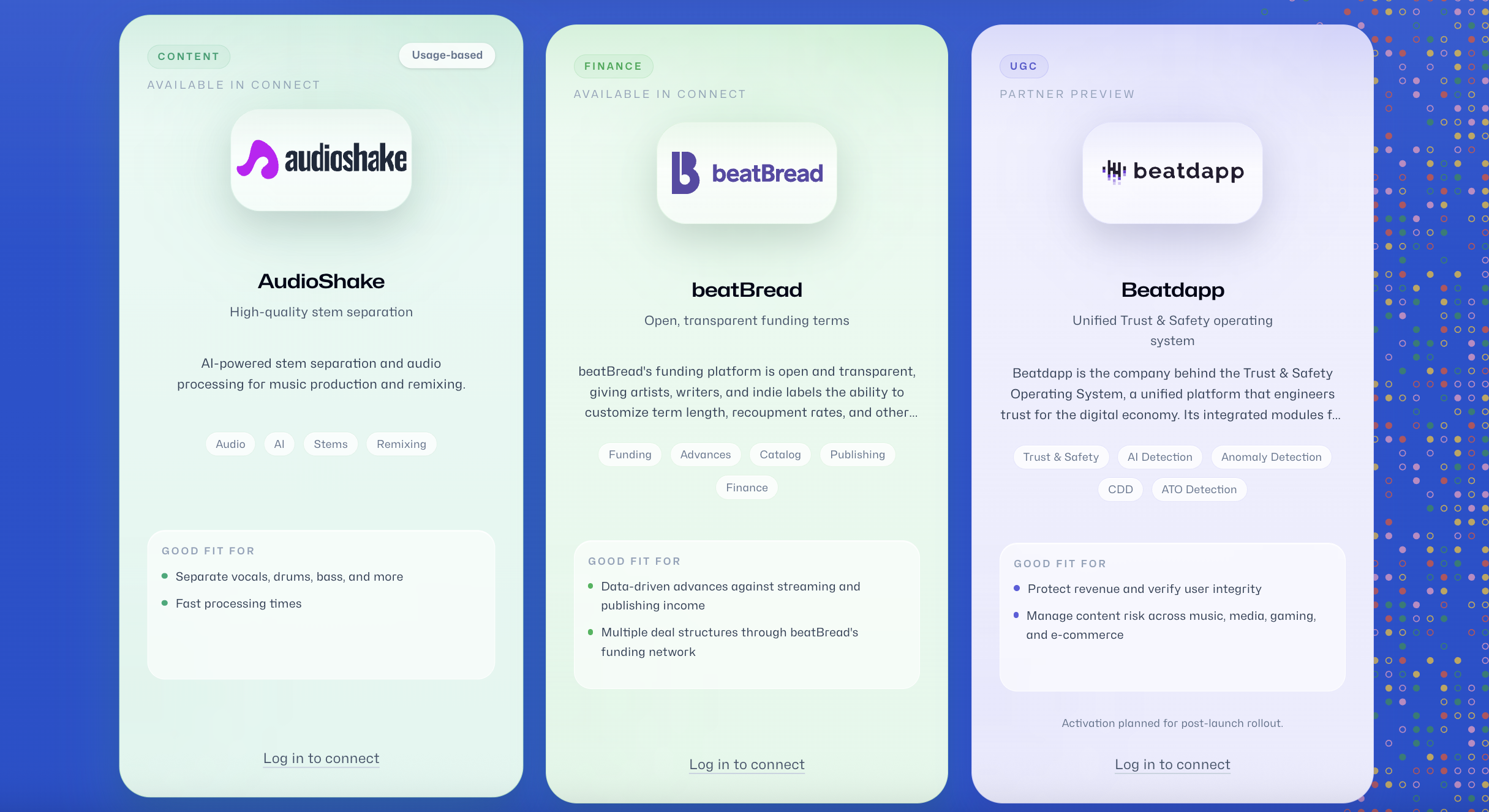 The idea is to make it easier for music companies to discover and adopt specialized tools across the industry. Early partners participating in the launch include companies such as: Audioshake, BeatBread, Beatdapp, LyricFind, Muserk, Musixmatch, and Pex, among others.