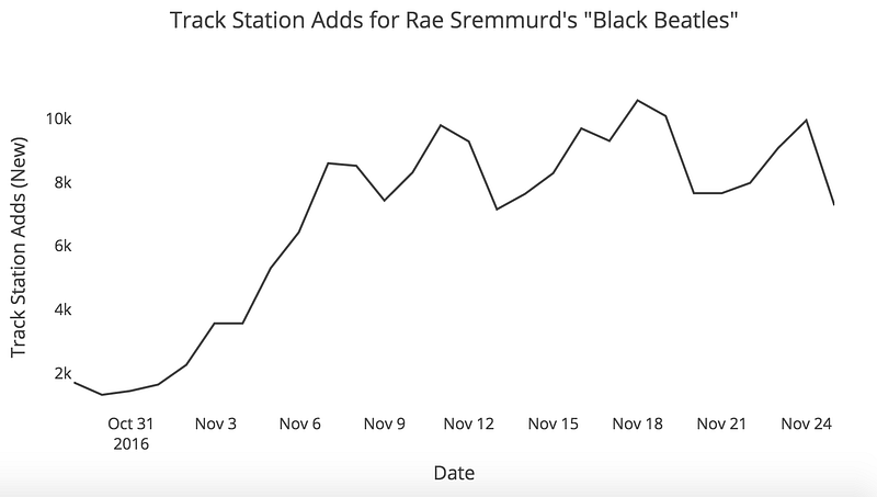 While the Chainsmokers and Halsey’s Closer, D.R.A.M.’s Lil Yachty-featuring Broccoli, and viral dance sensation Juju on That Beat stay strong in the top three, there’s a bit of commotion in the bottom half of the Top 10 this week as Rae Sremmurd’s Black Beatles rises six spots. While the track has been around for a little while now — StremmLife 2 dropped back in August, and the song was released as a single in September — it only recently became the soundtrack to the the Mannequin Challenge, the latest viral video trend that has brought the nation to a literal standstill.