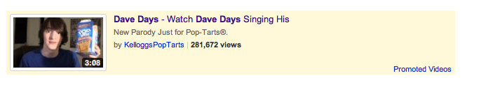 …or was he? After a little research on Dave and his internetting, I realized that if “celebrity” is some combination of influence and reach, Dave Days was doing better than most movie stars. His YouTube page has a cumulative view count of over 270 million, more than mainstream uber-pop-stars like Ke$ha.