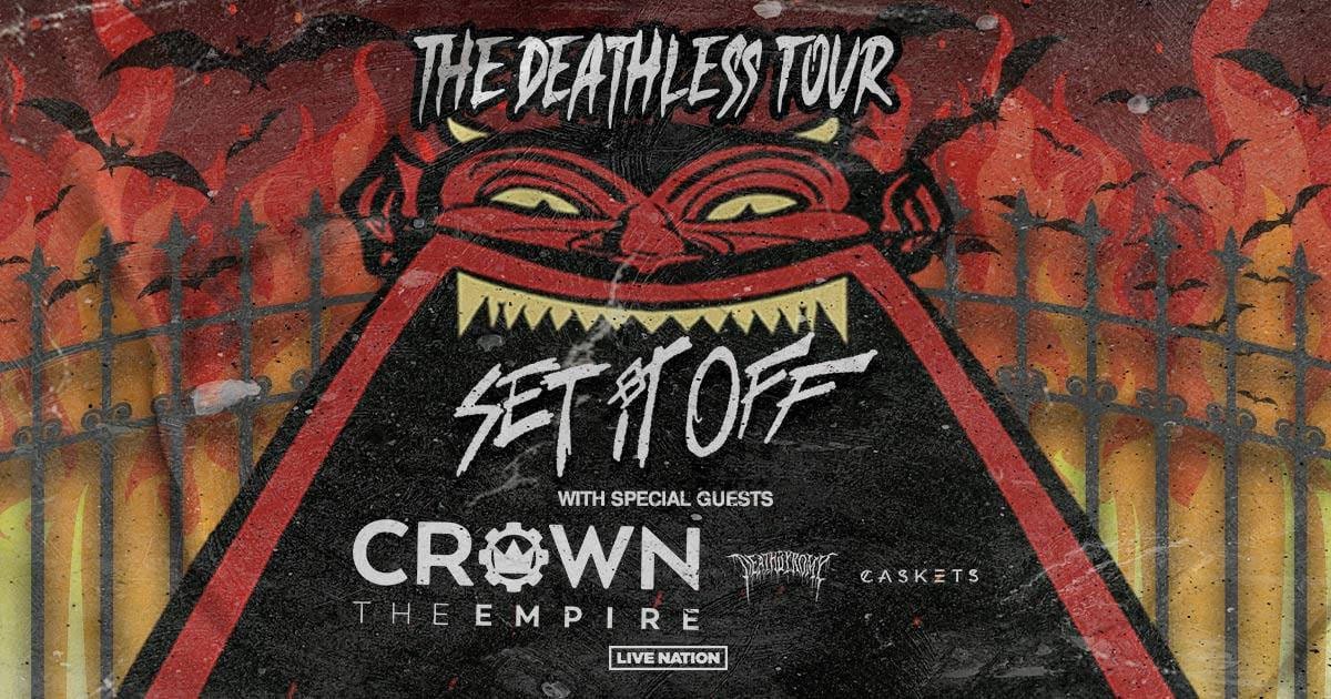 Get ready for an exhilarating experience as rock band Set It Off embarks on The Deathless Tour. Presented by Live Nation, this 32-date tour is set to ignite stages across North America with their powerful performances. With special guests Crown The Empire, DeathbyRomy, and Caskets joining them on every tour date, this is a live music event that fans simply cannot miss.