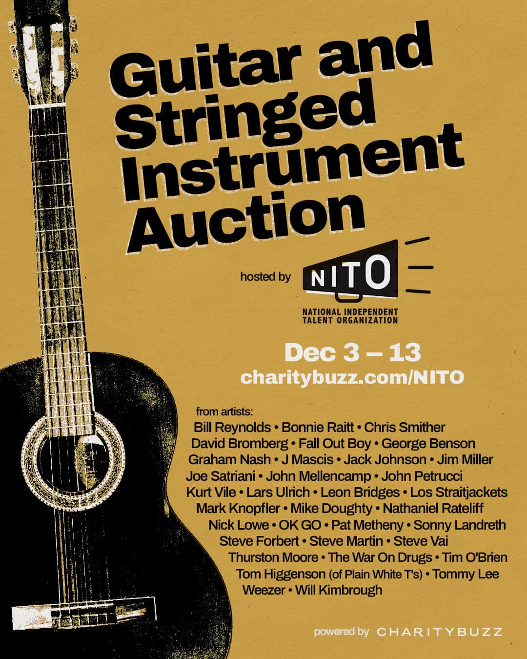 UPDATED: Indie live music trade group NITO has launched what looks to be the coolest signed guitar and stringed instrument auction of 2020 as a fundraiser to help save independent musicians and the people that support them.